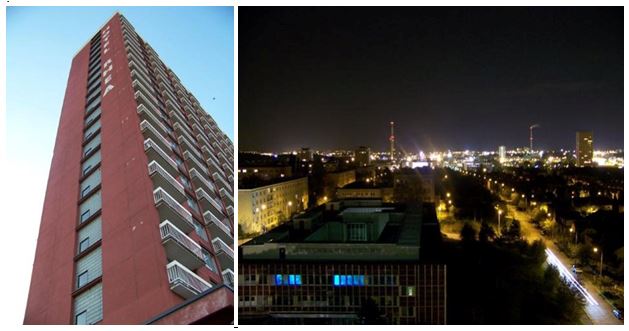 Zvečer se odpravimo proti drugemu hotelu, ki naj bi bil bolj preizkušenj. Bil je enak kot prejšnji. Bivša socialistična stavba Ruskih oficirjev. Osebje pa ravno nič prijaznejše, kot omenjeni. Težili so za prav vsako reč. Še dobro, da je vodička malo posredovala. Spet sem se razveselil številnih stopnic te stolpnice ter razglednih fotk z vršnih nadstropij. Prispem v 20. vršne nadstropje, ko me nek uslužbenec vpraša če fotkam. “Yes,” sem presenečeno odvrnil. Tip mi je odklenil vrata za na streho in mi dal 2 minuti na voljo. Čas sem izkoristil snemanje 360° večerne panorame ter nekaj posameznih fotk Prage.