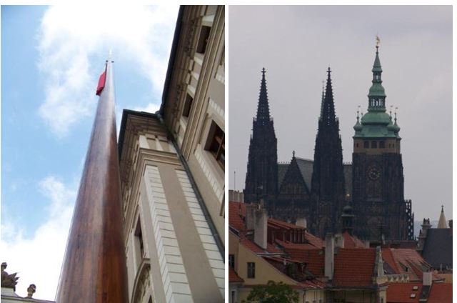 Po zajtrku je sledil ogled grajskega kompleksa Hradčanov. Gre za skupino palač ter katedrale, ki stojijo na hribu nad mestom. Ne gre pa to za eno stavbo, ker je vsak vladar kaj novega dodal tekom večstoletne zgodovine tega največjega grajskega kompleksa na Češkem. Posebnost so pročelja, ki so nekakšne praskanke. Naneseni sta dve plasti ometa. Ena je običajno spraskana v različne, običajno “pisemske” vzorce. Ogledamo si tudi menjavo straže pred predsedniško rezidenco. Z vojaki se tudi fotografiramo. Tu stojita tudi dva visoka stožčasta drogova za zastavo, ki sta delo našega arhitekta Jožeta Plečnika. Tu stoji tudi Plečnikovo stopnišče.