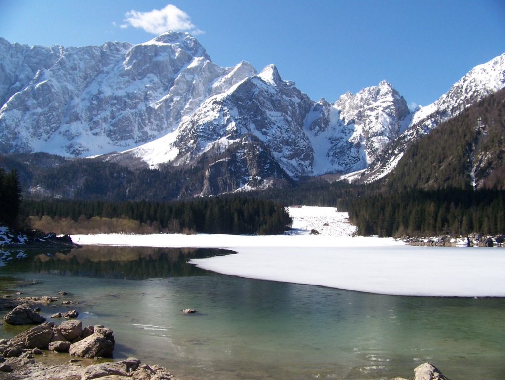 Ker gre še za precej nedotaknjen in turistično (na srečo) ne razvit po 1. vojni zaplenjen košček slovenskega ozemlja, so ga leta 1971 razglasili za narodni park. S 45 hektarji spada med najmanjše nacionalne parke. A se kljub temu ponaša z zelo bogato favno in floro. To smo tudi preverili na našem današnjem izletu. V prvem jezeru, polnem kristalnem čiste vode se je bohotila skorajda popolna kopija Mangarta nad njim. Drugo jezero pa se še ni otreslo zime in je bilo popolnoma zamrznjeno. Misli nam starejšim pa so ob pogledu na dobro zasnežena pobočja uhajala malo višje, kot smo bili. Sploh po tem ko smo ugotovili, da se po grapi pod Mangartom vzpenja skupina kakih 30 alpinistov. Nazaj proti prvemu jezeru smo se vrnili mimo ogromnih ledeniških eratičnih skal, ki imajo baje prostornino kar 30 000 kubičnih metrov. Tu je bila pot ravno dovolj poledenela, da smo morali otroke na nekaterih odsekih peljati po enega in enega.