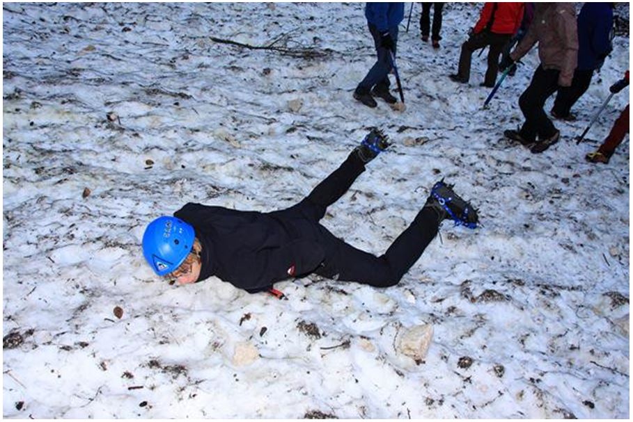 Jaz med demostracijo pravilnega položaja zaustavljanja s cepinom (foto: Mijo K.)