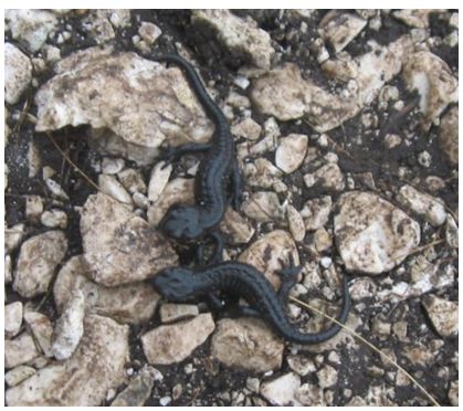Dolgočasno pot sta mi skrajšala dva črna planinska močerada (Salamandra altra) med parjenjem. Posebnost te podvrste je ta, da edina med dvoživkami za razvoj ne potrebuje vode. Za to mu zadostuje že visoka gorska vlažnost.