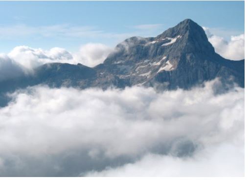 Nad gozdno mejo nimam nič več sreče z razgledom. Ravno tu vstopim v spodnji del goste plasti oblačnosti. Od tu dalje jaz in oblačnost bijeva izenačeno bitko v dviganju. Po dveh urah in pol jo pri Bivaku IV Na rušju ujamem. Že vidim modrino neba.