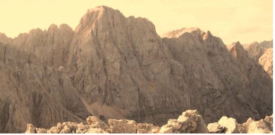 Pot gre po rahlo izpostavljenih poličkah in razah jugo-vzhodnega grebena Škrlatice. Še kakih 15 minut hoje, ki nam ves čas postreza odličen razgled na (Kotel) krnico pod Velikim Rokavom in že sem na vrhu. Sam, popolnoma sam. Zato izkoristim priliko za popolno uživanje na Soncu, fotkanje baje najlepšega razgleda v Julijcih.