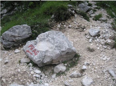 Skok mimo balvana od spodaj in zgoraj v Slovenski grapi