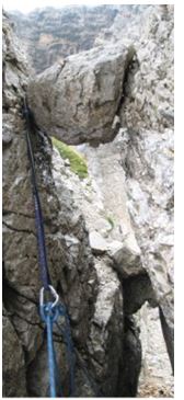 Domen uživa med prečanjem Frelihovih polic, jaz pa v razgledu v prepad – Slovensko grapo