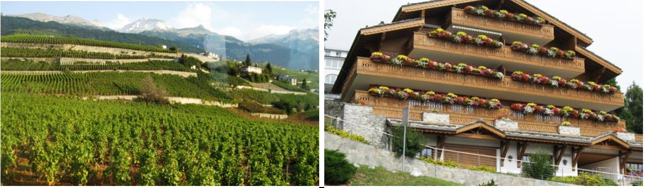 Na prisojnih pobočjih te doline uspeva vinska trta. Crans Monta leži slab kilometer višje na višini okoli 1500 m. To svetovno znano smučarsko središče je bilo leta 1987 prizorišče svetovnega prvenstva v smučanju. 7 let prej pa prizorišče ene izmed Bondiad. V vseh teh letih se je razvilo v veliko in mondeno smučarsko središče. Nekatere proge segajo celo po ledeniku na nadmorski višini 3000 m. Poletipa zapolnjujejo kapacitete z golf turizmom. Gre pravzaprav za eno veliko »Kranjsko Goro«.