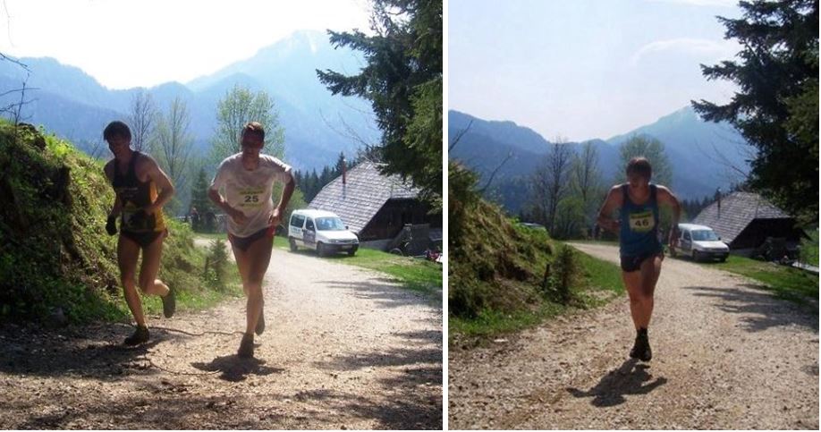 Tradicionalno za prvomajske praznike dežuje. V gorah sneži. Poleg snega se bomo morali spopasti še z od dežja razorano progo. Štart! Klemen Triler takoj in brez oklevanja napade. Koga? Samega državnega prvaka Simona Aliča. Uvodni “ravninski” kilometer drži kak korak prednosti pred njim. Sam sem videl s kakšno lahkoto je Simon tekel za njim. Sploh se ni naprezal. On je pravi specialist zaekstremne strmine. Stroj iz mišic in kit. Sam sem jima do tu še komajda sledil. Razlika pa vseeno ni večja od dveh metrov.