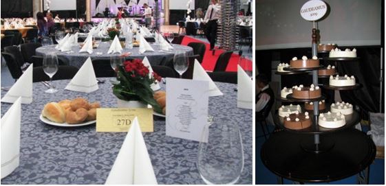 Utrujeni od plesnih korakov sedemo za mize. Hrana sicer ni bila tako izbrana, kot je bil izbran sam dogodek. Ampak meni je bilo to veliko bolj všeč, kot pa da bi se trudil s kakim novim načinom odpiranja rakov. Predjed je prav vzbudila tek. Glavna jed pa ge je upravičila. Sladek kulinaričen vrhunec večera po polnoči je bila torta. Najbolj zaslužni predstavniki razredov so smeli prvi zarezati v to okusno sladico. Običaj spominja na poročnega. Dekleta, nekatera z oblekami ne dosti slabšimi od poročnih, so se prav verjetno že predstavljale na “njihovi noči”. Načrpali smo si dovolj moči še za nadaljne pol noči.