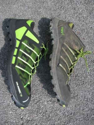 Deževje je spralo večino snega z naših vršacev. Stol – najbližji najvišji – je še vedno odet v tenko in luknjičasto belo ogrinjalo. Dovolj tanko, da ga napadem zgolj s copati. Imam nove! Testiram popolnoma nov model tekmovalnih off road copat Inov-8 Mudroc-280. Podplat je enak, kot pri lanskemu modelu-robustni Metaflex. Sistem zavezovanja so še bolj izpopolnili z novimi vezalkami. Te se zategnejo in stisnejo stopalo, da zavezovanje niti ni potrebno. Sicer pa je čevelj razen nekaj kozmetičnih popravkov v osnovi enak. Tudi tekači smo radi lepi! ![]()