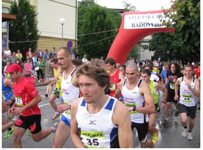 Lije! V takem vremenu pa že ne bom tekel. Vendar ploh je kmalu konec in za tek praktično idealni pogoji me prepričajo, da se prijavim. V Radovljici nastopam že tretjič in vem kaj lahko pričakujem oz. bolje rečeno česa ne smem pričakovati. Organizator se očitno nikoli ne trudi preveč z iskanjem pokroviteljev, tako da za štartnino ne dobimo nič. V devetletni zgodovini teka jim še ni uspelo izmeriti časov tekmovalcev. Letos končno. Saj je novoustanovljeno Atletsko društvo Radovljica prevzela organizacijo Gorniškemu klubu Karavanke. Kar je šlo letos na slabše je to, da so že prej skromno 2 km dolgo progo, oškrtnili še za njen najlepši del skozi staro mestno jedro. Tako smo tekli 8 dolgočasnih dober kilometer dolgih ravninskih krogov med radovljiškimi bloki. Vse seveda ni bilo tako črno. Denimo nagrade za prve tri v vseh kategorijah so bile dobre ter sama trasa urejena, kot se spodobi.