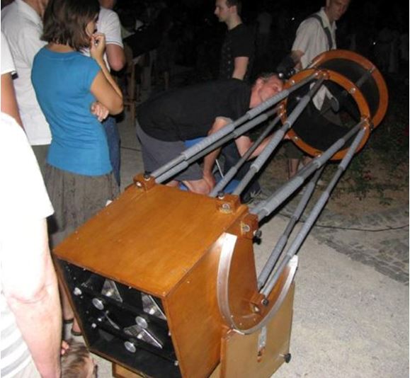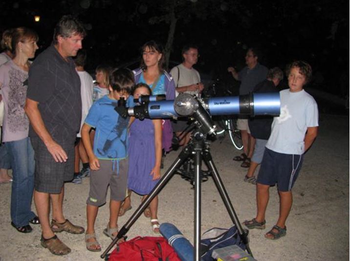 Moj teleskop z desetmetrsko vrsto radovednežev. Z Jakom sva kar tekmovala kdo bo imel daljšo. ![]()
