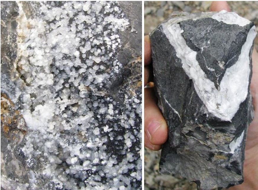 Največ pa smo se ukvarjali s črnim plastnatim grebenskim apnencem, prav tako julijsko-tovalijske starosti. Njegova posebnost je ta da so vanj vrinjene bele žile kalcita, kar ustvarja svojevrsten kontrast.