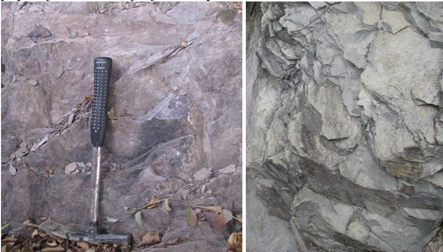Nekoliko mlajše kamnine smo našli ob cesti v Lesnem Brdu, kjer se je nahajal zgornji julijsko-tovalijski člen z različno obarvanimi plastmi muljevcev, peščenjakov in konglomeratov. Prav zanimivo je bilo videti kako so kamnine barvno prehajale iz metra v meter: iz zeleno-sivih odtenkov do vijolično rdečih. Te kamnine so zelo neodporne na prepevanje ter zelo težko jim je določiti plastovitost.