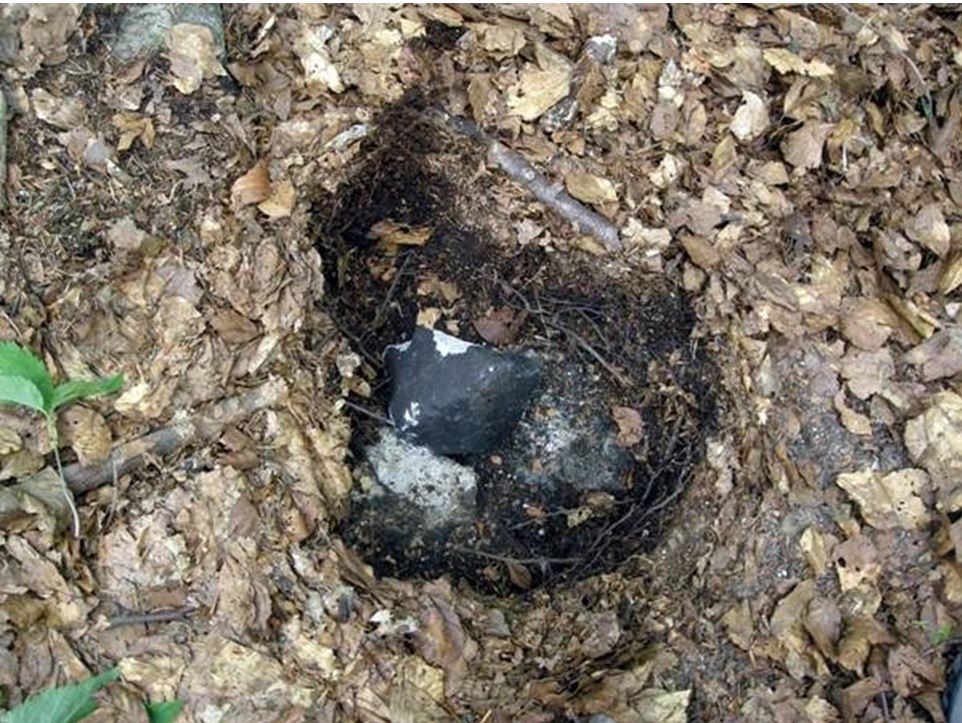 Največji kos meteorita v udarni jami. Foto: Miha Jeršek