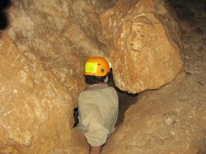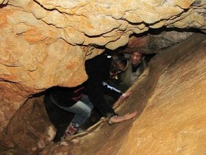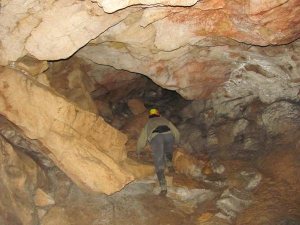 Potem pa se je Luka kar naprej v ribo prerinil skozi ozko luknjo, ki je očitno vodila v nek nov rov. Le še njegove noge so bingljaje proti nam, potem pa je izginil. Čez nekaj minut se je pojavil na popolnoma drugi strani rova. “No saj ni nič takega,” nas je povabil da mu sledimo v okno v temo. Treba se je bilo plaziti po vseh štirih, prerivati skozi špranje ter sem ter tja kam butniti z glavo v strop, pa je šlo skozi. Sam sem prvič takole malce okusil jamarstvo in moram priznati da sem zelo užival.