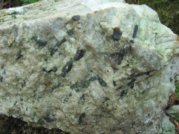 V pegmatitnih žilah zrastejo najlepši in največji minerali. Ta primerek vsebuje črne turmaline.