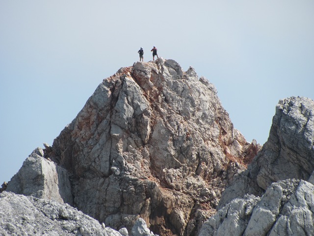 Naprej proti Grintovcu je treba prečiti še manjše snežišče. Lahko bi se mu izognil, a ker sem že celo turo s seboj tovoril cepin, sem ga vendarle prečil. Zato cepin na poteh, ki sem jih danes obhodil ni nujen. Cel dan sem lahko užival v samotni hoji, šele na Grintovcu sem naletel na mravljišče ljudi. Pač najvišji vrh je navadno najbolj obiskan, Kočna le 18 m nižja (od Grintovca) pa je deležna nekajkrat manjšega obiska.