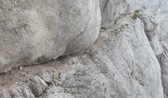 Z Jezerske Kočne sem nadaljeval navzdol proti Zdolški škrbini. Tu velja omeniti detajl poti, ko v spodmolu prehod postane tako ozek da je treba sneti nahrbtnik z ramen da se lahko splazimo skozenj. In ker v naravi nobena stvar ne nastane kar tako sama od sebe, sam sumim da je spodmol najverjetneje posledica manjšega tektonskega preloma.