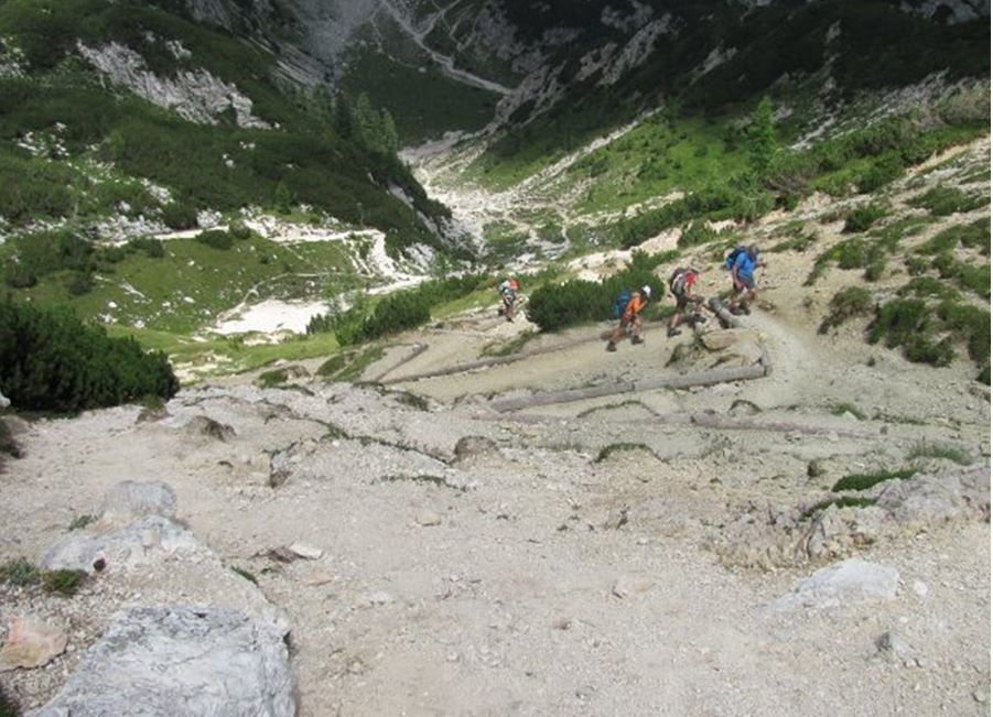 Od Studorskega prevala dalje pravih klancev ni več. Moj cilj ni več pridobivanje mest, ampak le to da gleženj ostane cel. Do sem sem pridobil že okoli 15 mest, vse nadalje dolge kilometre do cilja pa niti enega več. Prvi spust je sploh zopern in vesel sem bil da ga je bilo hitro konec. Proga poteka naslednje dva kilometra skorajda povsem naravnost in zato sem se hitro povsem spočil. Enostavno nisem upal teči tako hitro da bi se utrudil. Če bi dosegel tako brzino, progi ne bi več mogel slediti in bilo bi prenevarno. Druga težava pa so bili še “romarji” namenjeni proti Triglav, ki se niso dovolj hitro umikali s proge.