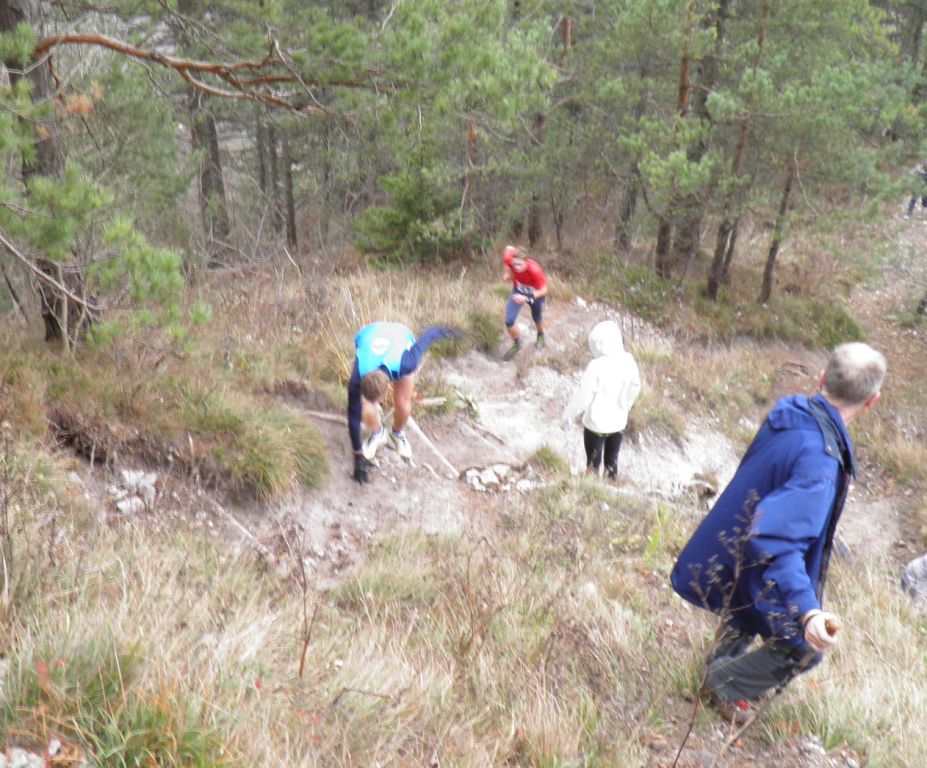 Prvih 500 m se proga vzepanja po asfaltni cesti. Že tu sem čisto odpovedal in nisem mogel slediti najboljšim (Alič, Lamovec, Kališnik), ker je bilo premalo strmo. Za tem pa proga zavije na strmo ozko gozdno pot. Nekaj časa sem sicer potreboval, da sem se spočil od mučenja na cesti. Potem pa sem pobral in ujel priključek do Gašperja Bregarja. Ničkoliko bojev sva midva letos že bila na tekmah. Tokrat je bilo mogoče še najbolj zanimivo. Od polovice proge pri kmetije Mehačk sva tekla sploh tesno skupaj. Mene je zmanjkovalo na ravninah in spustih, Bregarja pa v strmih klancih.