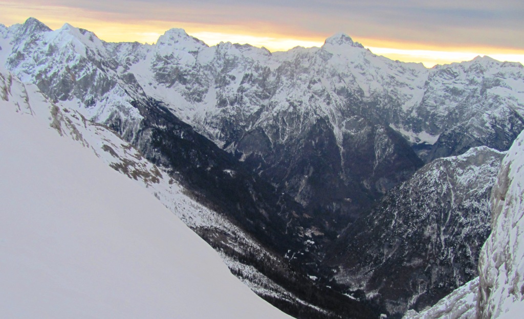 Turo smo začeli ob petih zjutraj v Planici. Skozi Tamar smo hodili zelo počasi vedoč da je pred nami zelo dolga zimska tura. Sprva se mi je zdelo se mi je da smo se na pot odpravili precej zgodaj. A daleč pred nami, pod Jalovškim ozebnikom se je že vila manjša reka (baterijskih) luči. Ne, ne bomo sami.