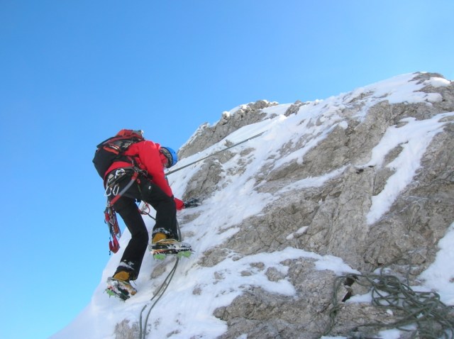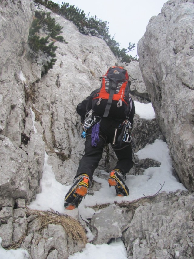 Čestitke za ta vzpon. Nekaj me samo zanima: kako tehnično zahteven je pravzaprav del med Žlebom in Palcem pozimi? Ali se da priti gor s pohodnim cepinom?