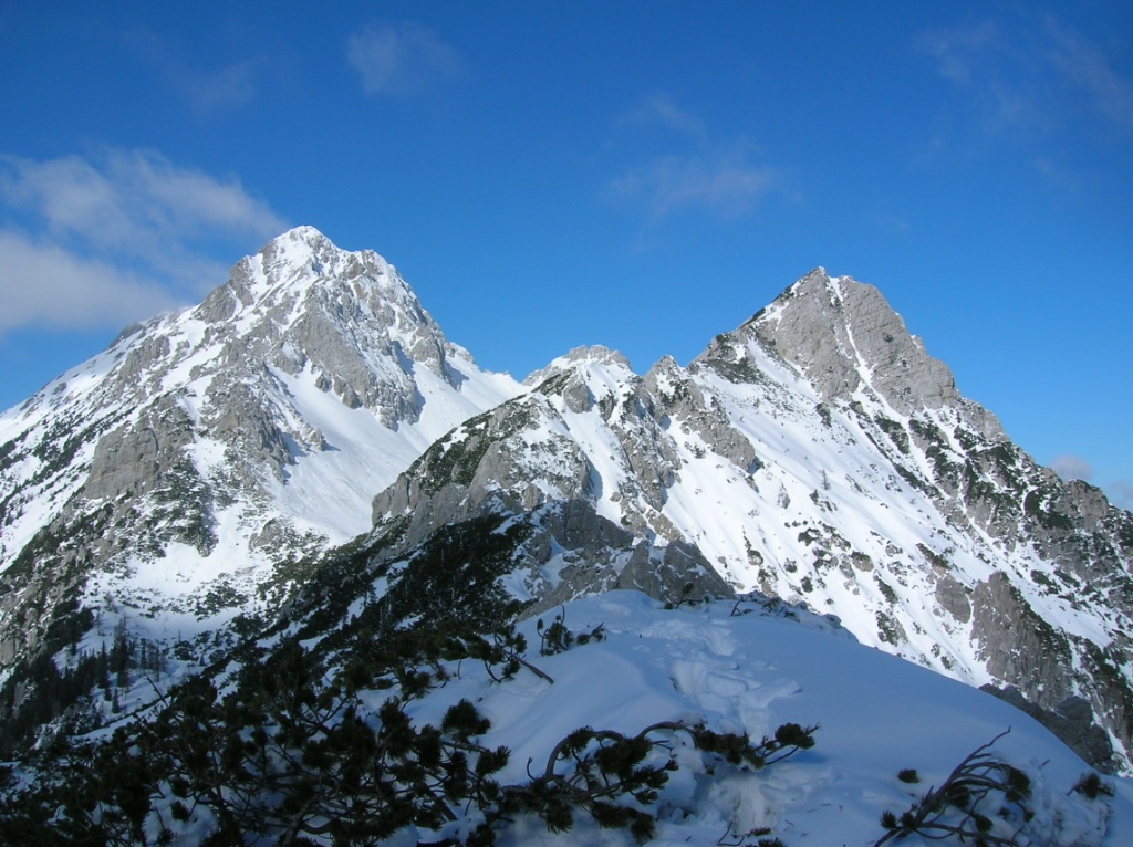 Greben med Možmi in Palcem je samoten, dobra 2 kilometra dolg brezpotni mejni greben z Avstrijo. Glede na snežne razmere in predvsem relativno visoko nevarnost proženja snežnih plazov, sva se z Jušem odločila da bova na tem grebenu še najbolj varna.