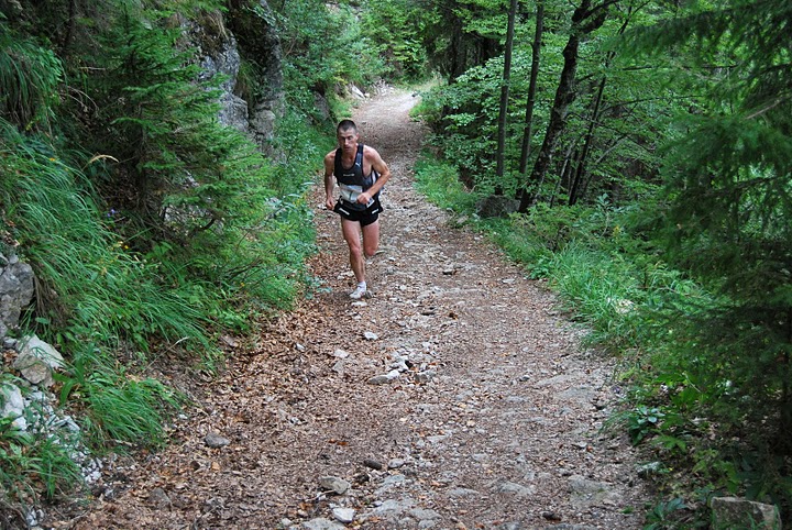 Že kmalu po štartu v Rudnem se začne precej dolg in zelo strm klanec. Do sedaj sem ga še vedno pretekel. Nisem bil pa prepričan, če ga bom sposoben tudi letos. Vendar mi kljub začetni zakrčenosti, noge stečejo. Počasi in z užitkom se prebijam iz začelja proti ospredju, med tem ko se nekateri že precej mučijo. Na tem klancu je vedno potrebno nekoliko previdno trošiti z močmi. Res da doprinese večji del višinske razlike na progi. Vendar je za njim še velika večina (okrog 6 km) proge do cilja. Vmes je tu nekaj krajših in srednje zahtevnih spustov, kjer sem še dodatno pridobival. Na spustih sem noge popolnoma sprostil. Tako da sem imel občutek, kot da tečem na dveh prožnih vzmeteh in to brez vsakega najmanjšega napora. Hitrost, ki sem jo dosegel na dnu spusta sem potem prenesel še v začetek novega klanca.