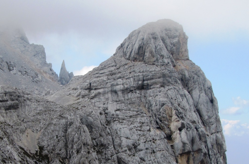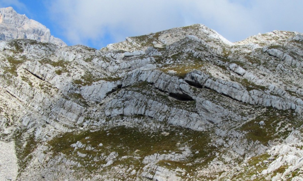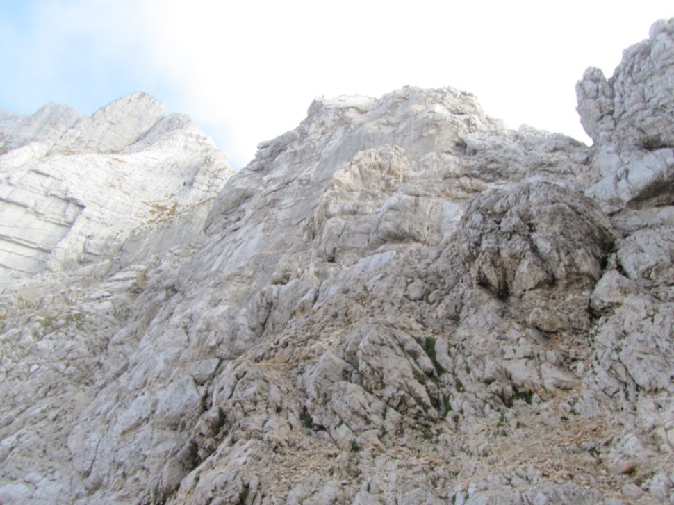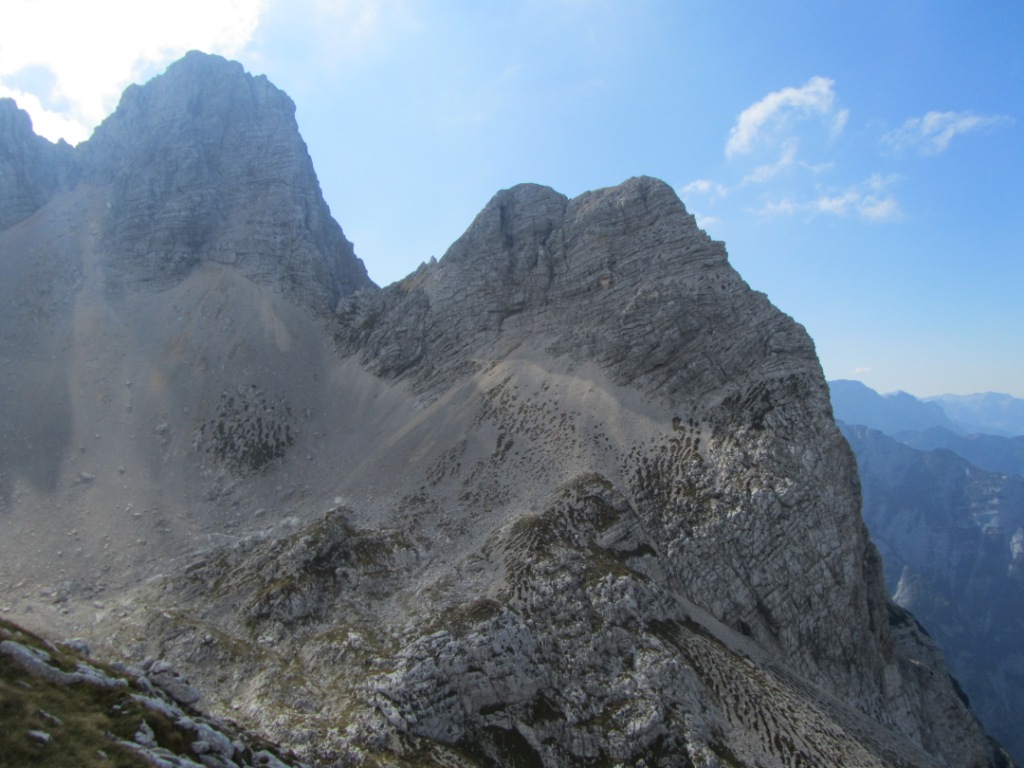 Moj naslednji cilj pa je bil Šplevta! Kaj si ti je od vetra zmešalo? Ali nisi bil ravno na tem vrhu. Ne, ne v mislih imam drugo Šplevto, ki skupaj s Kriškim robom zapira Kriško steno. Vzdevek te gore je tudi Indijanec, saj gledano z Bovških vratc res izgleda točno tako kot obraz Indijanca s perjanico. Še prej sem po markirani poti sestopil proti Pogačnikovem domu. Hm, “markirani”! Malo prej sem lovski stezici lažje sledil, kot tej “označeni” poti.  Pod Pogačnikovim domom sem zavil, kot proti Razorju in potem skorajda takoj skrenil desno navzgor na brezpotje proti Šplevti. Brezpotje sploh ni zahtevno. Se mi je pa zelo vleklo preden sem na sedlu med Razorjem in Šplevto končno stopil na t.i. perjanico Indijanca. Sicer pa povsem lahko dostopen in precej razgleden vrh.