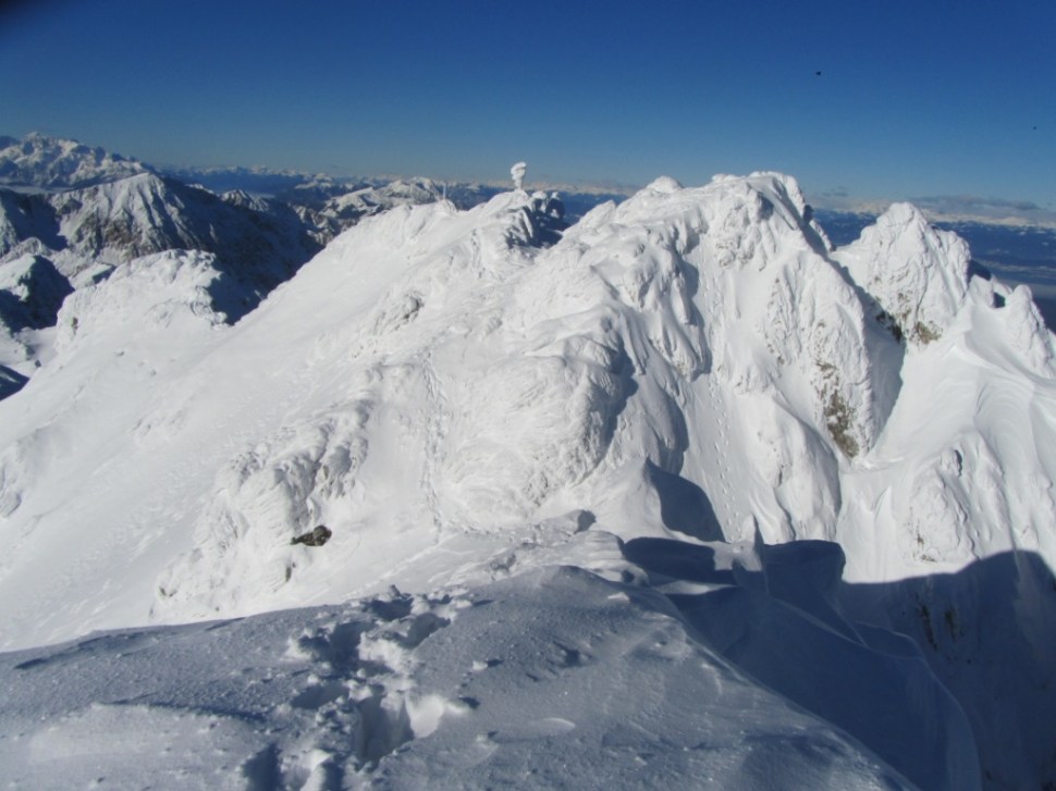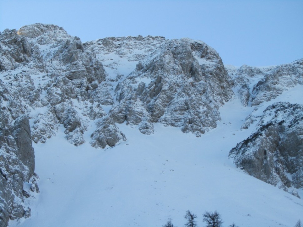 • Pri “Y” v Begunjščici je tisti levi krak fake.;) Lahko bi šel na rezcepu po tisti strmi flanki v desno na rob in po njem po skalah gor na glavni greben. To je desni krak. Lahko bi pa nadaljeval kar naravnost navzgor po najbolj logičnih prehodih, zgolj z rahlo tendenco v levo. To je pa v bistvu leva varianta in ne tista globoka grapa, po kateri si šel ti do roba. Obe pravilni varianti sicer tehnično nista nič posebnega (je pa strmina zgoraj konkretna) in sta ob zadostni količini snega brez problemov smučljivi.