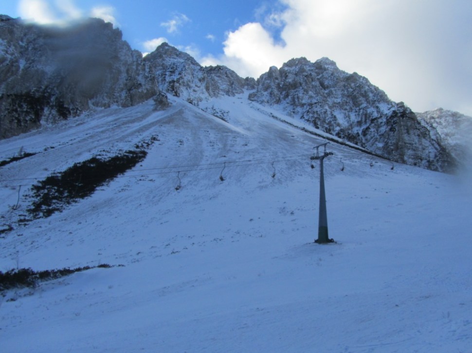 Najprej je bil plan da bi skupaj odlaufali z Železnikov prek Ratitovca v Dražgoše. Vendar, ker se zvečer nisem najbolje počutil, sem se odločil da grem raje po svoje. Namenil sem se v Ostržkovo grapo v Begunjski Vrtači. Do grape se najprej dostopi po melišču, ki se dviga levo nad prvo sedežnico na Zelenici. Tako da sem hodil samo 10 min predenj, sem zavil navkreber. Že čisto spodaj je močno pihal veter.
