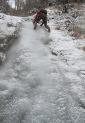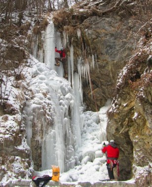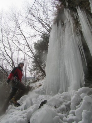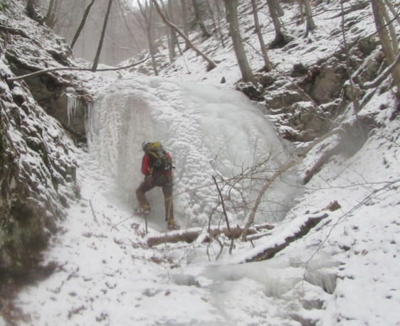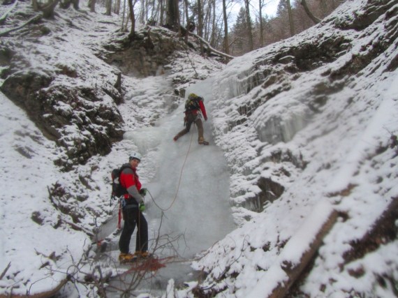 Vsaj po dolinah pa že dolgo časa ni bilo tako stabilnega hladnega vremena. Zato so zamrznili tudi potoki v nižje ležečih predelih. Na srečo ima skorajda vsaka vas kakšnega. To pa je trenutno za nas študente še kako pripravno glede na to da je izpitno obdobje in nimamo časa da bi se vozili nekam daleč. Tako smo se odpravili v Kropo raziskovati slapove na enem izmed pritokov potoka Kroparice