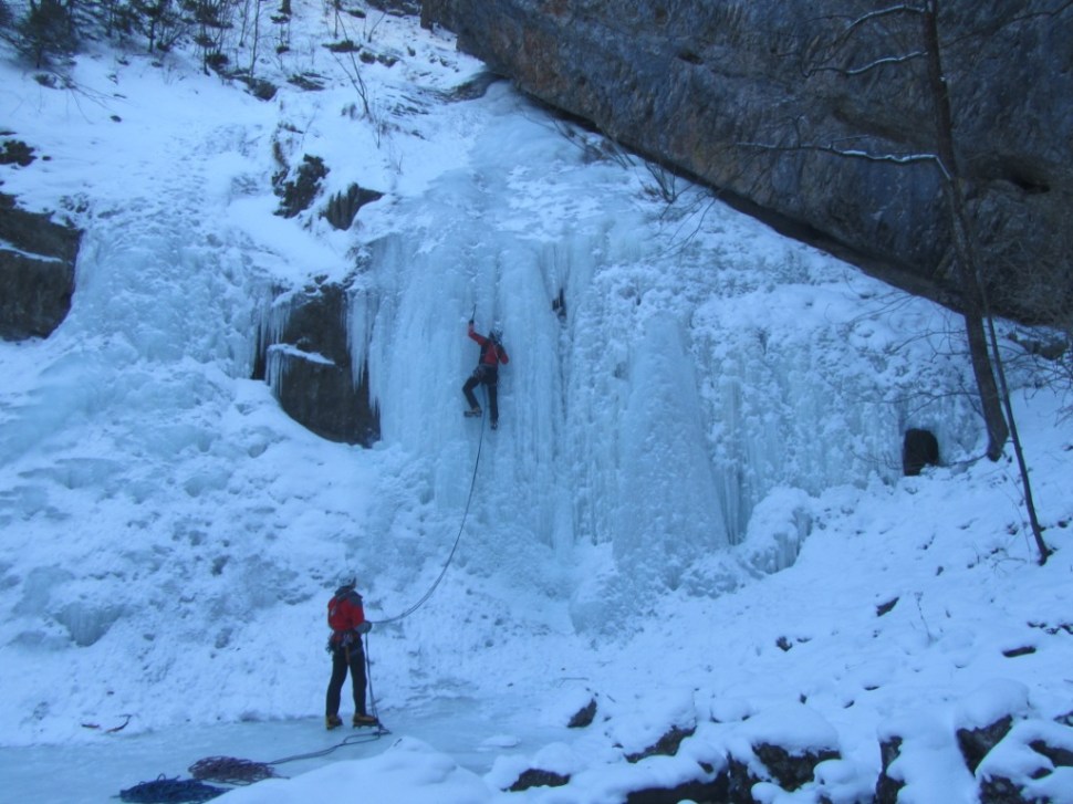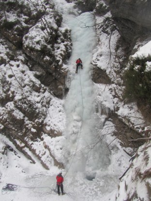 Tako kot poleti, je tudi pozimi ta soteska zelo dobro obiskana. Ravno zato da bi se izognili gneči smo začeli zgodaj zjutraj. Prvi slap (5 m) smo preskočili. Slap je sicer zaledenel, a voda teče tako pod, kot tudi nad slapom.