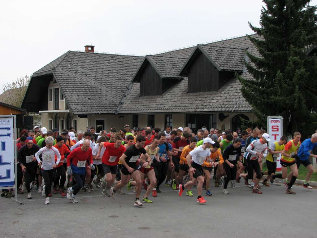 Štart teka je bil zelo hiter. Gašper Bregar je stoterico tekačev že v prvih nekaj sto metrih raztegnil na dolgo kačo. Sam takemu tempu nisem mogel slediti niti za trenutek in sem takoj začel zaostajati. V prvem kilometru je proga ravninska in tu lahko ravninski tekači pokažejo svojo hitrost. Zame je bil pa to pravi kilometer trpljenja. Pred mano se je zbrala vodilna skupina kakih dvajsetih tekačev, ki ji prav dolgo ne bi več mogel slediti. Na srečo pa je bilo ravnine kmalu konec in situacije se je obrnila na glavo. Že v prvih metrih uvodnega klanca skozi Križe sem ujel vodilno skupino. Za tem pa sem začel tekače prehitevati drug za drugim. Pred nami v glavni skupini so bili v tem trenutku le Bregar, Oblak in Bertoncelj. Na vrhu prvega klanca sem skupaj z Marjanom Zupančičem stopil na čelo vodilne skupine. Pričakoval sem da mi bo Zupančič takoj spet ušel, saj je sledil predel proge, kjer se teče predvsem navzdol in sam spet nisem konkurenčen. Na srečo sem se ga brez težav držal.
