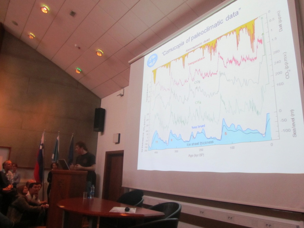 Tokrat smo imeli veliko čast in srečo da nam je Alexey predaval na Institutu Jožef Stefan. Alexey sicer že vrsto let dela v Ruski polarni bazi Vostok. To je mesto, kjer so med drugim izmerili najnižjo temperaturo na Zemlji in sicer -89.2 °C. Baza sama se sicer zaradi izredne debeline ledu nahaja na nadmorski višini kar 3500 m. Svetovno slavo pa je dobila šele pred dvemi desetletji, ko so ugotovili da se neposredno pod bazo nahaja veliko sladkovodno jezero. Pravzaprav je t.i. jezero Vostok peto največje jezero na svetu po volumnu vode- dolgo 250 km, široko 50 km ter globoko v povprečju 344 m. Dolgo časa je bila ideja o jezeru pod ledom na najhladnejšem mestu na Zemlji (kjer je povprečna temperatura kar -55 °C) radikalna in znanstveniki ji nekaj časa niso verjeli. Razlog za obstoj jezera je v Zemljinem geotermičnem gradientu oz. njeni notranji toploti. Z globino se proti središču Zemlje temperatura povečuje. V povprečju se temperatura poveča za 4-5 °C vsakih 100 m globine. Jezero Vostok pa je na globini oz. ga prekriva 3770 m debela plast ledu! Kasneje so seizmičnimi raziskavami obstoj jezera z gotovostjo potrdili. Raziskave so potekale tako da so v okolici baze Vostok detonirali velikanske količine eksploziva (Alexey temu pravi kar “big bang”). Potem pa so s posebnimi napravami (geofoni) zaznavali odboje seizmičnih valov od različnih struktur. Na seizmičnem profilu so tako opazili značilen odboj valov od dna jezera ter od njegove gladine.