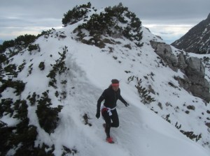 No, in od predavanja o mrazu k resničnemu mrazu. Z Evo sva se odpravila v enega izmed centrov slovenskega gorskega teka – na Kališče. Tekla sva po klasični gorsko-tekaški varianti -bolj ali manj ves čas direktno navzgor po bližnjicah. Proga je v redu in le mestoma blatna. Pričakoval sem da bo mnogo huje, glede na to da je bil prejšnji vikend tekma 6 ur Kališča. Prav tako na Kališču ni več snega. Ga je pa še kar nekaj na sosednjem Bašeljskem vrhu, ki sva ga prav tako obiskala. Ves čas je za vzdušje z oblakov rahlo naletaval sneg. Pravzaprav je bilo vzdušje za Kališče nenavadno mirno in spokojno, saj celo pot nisva srečala nikogar.