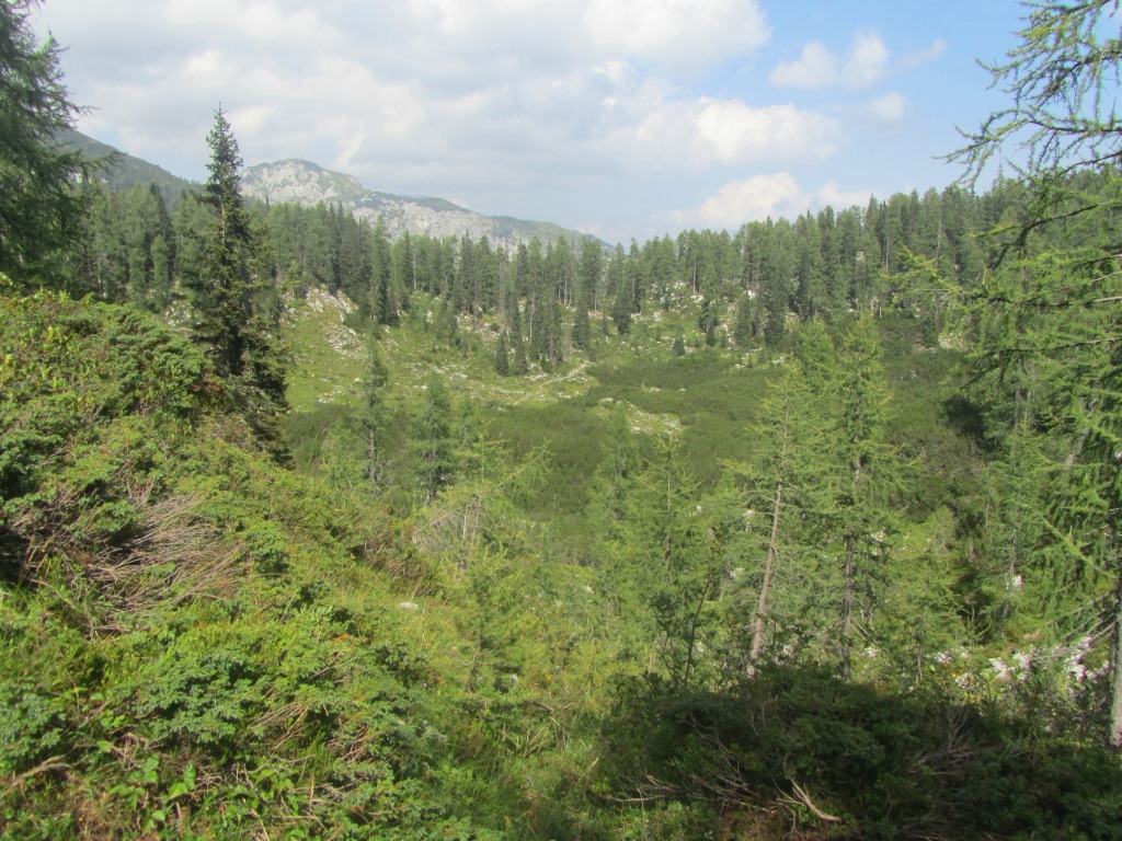 Pa še eno stvar se vam dolžan. Na eni prejšnjih tur sem začel zgodbo o “opečnato rdeči Miheličevi kamnini“, ki se pojavlja pod predvrhom Debelega vrha. Takrat sem postavil hipotezo da gre za močan zmični prelom, ki poteka v smeri severozahod-jugovzhod pod dolini Krme, čez Debeli vrh. Sklepal pa sem da njegovo jugozahodno nadaljevanje poteka ravno čez sedlo med Prvim Voglom in Slatno. Glede na to da sem tu našel identične kamnine, kot na Debelem vrhu, sklepam da je zelo verjetno to tudi res. Vseeno pa moram biti nekoliko samokritičen. Namreč dobršen del gorskih sedel in globeli je vezan na prelome. Zato obstaja možnost da ne gre za isti prelom, ampak kašnega sosednjega. Torej povedano drugače: definitivno gre za prelom, nisem pa imel časa da bi natančno raziskal za katerega. To kar vam pravim je dostikrat problem v geologiji, saj mnogi geologi prehitro iz premajhnega števila podatkov vlečejo preveč natančne zaključke. Sam sem vedno na tisti strani najbolj skeptičnih. Jaz vedno dvomim o neki stvari toliko časa dokler dvom ne postane absurd, pa še takrat ne verjamem povsem. Nekdo je namreč zapisal zelo modro misel: “Dvom je prijatelj znanosti.”