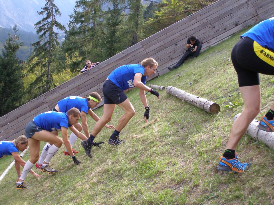 Štafetno preizkušnjo v naši skupini je začel Aljaž Božič, ki je štafetno palico na stotih metrih predal svojemu bratu Anžetu. Žal tega nisem uspel videti, saj je skakalnica tako zelo strma da se sploh ne vidi dna hrbtišča. Sam sem tekel tretjo predajo, ki je od vseh najbolj položna. Tekli smo prek mize skakalnice prek katere smo se povzpeli po nerodno strmih stopnicah. Vse se je odvijalo tako zelo hitro da dogodkom skorajda ni bilo mogoče slediti. Simon je na koncu našo štafeto ponesel do skupno šestega mesta v cilju. Zmaga med štafetami, pa je kar nekoliko po presenetljivo, odšla med cestne tekače z imenom Pr`Koreninc.