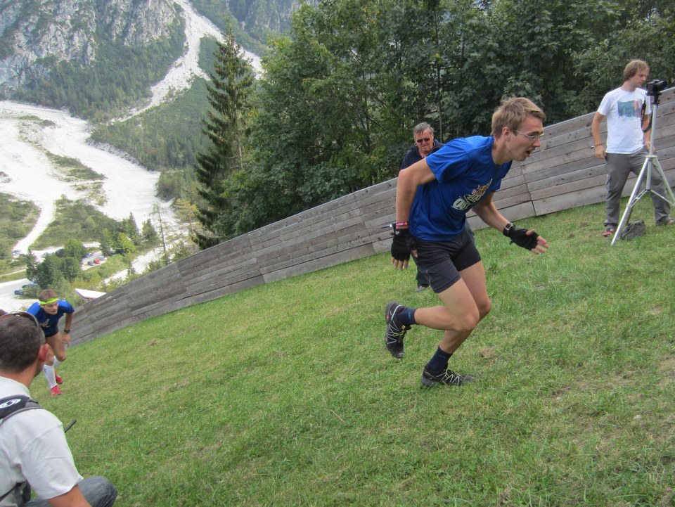 Med stotim in dvestotim metrom je skakalnica najbolj strma. Tu nisem tekel, ampak sem hitro hodil ter grabil mrežo. Nosil sem feratarske rokavice, kar se je izkazalo za dobro rešitev za preprečevanja žuljev na dlaneh.  Od dvestotega metra dalje do mize skakalnice, pa se teren precej položi. Takoj sem iz hitre hoje preklopil v tek. Nog ostalih tekmovalcev pa kmalu nisem videl več. Neverjetno, ampak v cilj sem s časom 3 min 13 s pritekel kot prvi. Vem da so nekateri najboljši tekmovalci taktizirali in s tem hranili moči za finale. Vseeno sem bil vesel prvega mesta – sploh zato ker je za mano zaostal kar sam rekorder.