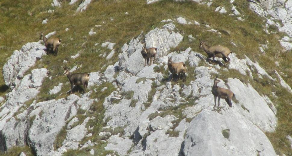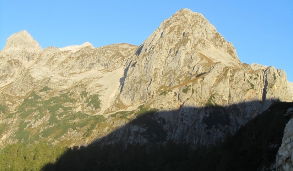Sestopil sem po normalni smeri, po lahko prehodnem zahodnem grebenu. Po meliščih sem se spustil navzdol v Mišeljsko dolino. Moj naslednji cilj je bil Škednjevec. Nanj se običajno pride po zahodnem grebenu s sedla med Škednjevcem in Vrhom Hribaric. Lani sem se po tej varianti že vzpel na vrh -vendar ne z Mišeljske doline, ampak s Hribaric.