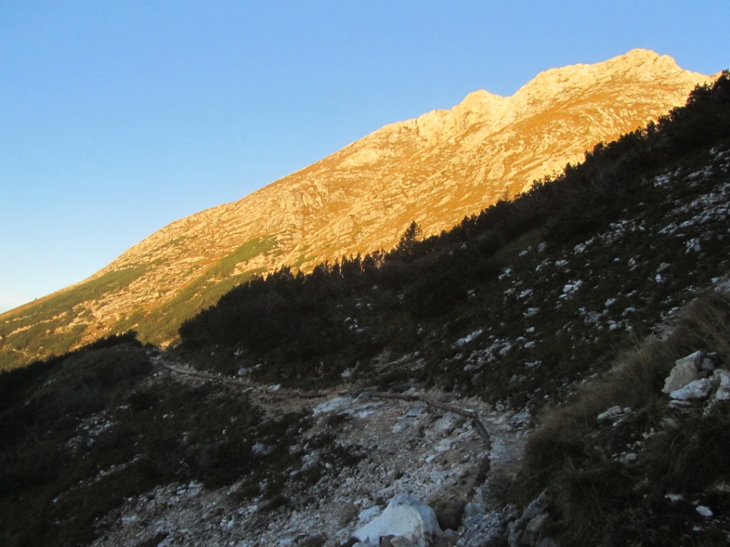 Vršni greben Škednjevca je zelo izpostavljen, težavam se umikamo na južno stran