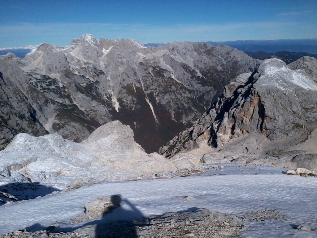 Bistveno bolj kot sama Kredarica, je zasnežen Triglav. Tisti, ki so bili na vrhu so poročali, o precej zoprnih razmerah z južnim snegom. Brez zimske opreme seveda na Triglavu ne gre. Sestopil sem po poti čez Ržke pode da bi izmeril katera pot na Kredarico je krajša. Izkazalo se je da je pot čez Konjsko sedlo s 7.4 km ca. 300 m krajša od poti čez Ržke pode. Rezultat me preseneča, saj se mi je zdelo da je razlika večja. Poleg tega še vedno ne morem trditi, katera izmed obeh poti je hitrejša za tek na Kredarico.