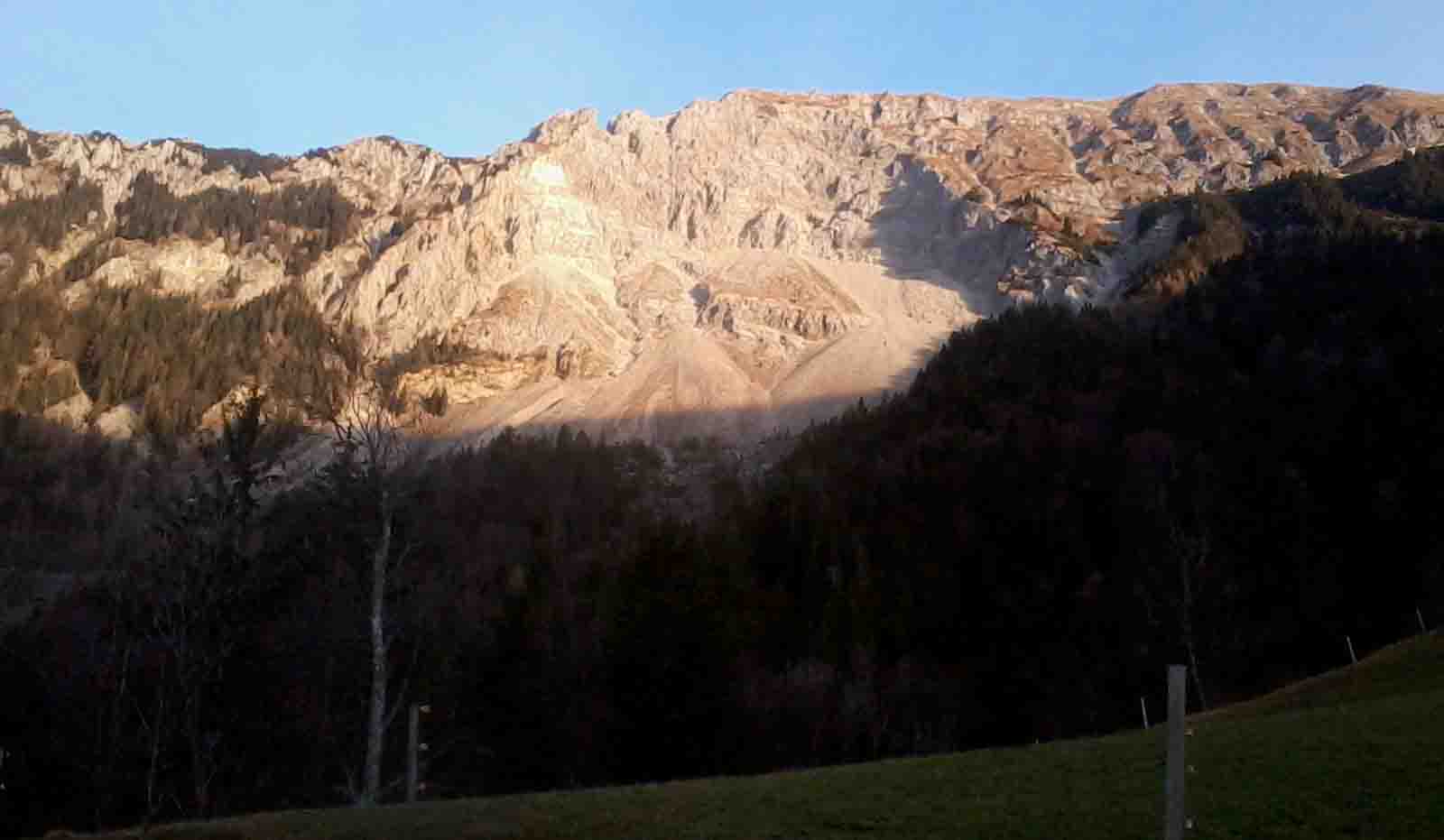 Z glavne ceste proti Ljubelju sem v Podljubelju zavil proti znani kmetiji Matizovec. Cesta je odlična in je očitno dobro preživela vsa jesenska neurja. Ko sem se vozil po tej cesti, pa me je pa kot geologa zmotilo nekaj povsem drugega. Pokrajina oz. gozd je tu na gosto posejan z velikimi balvani. So ledeniški? Ne, ni mogoče. Resnica se mi je prikazala že nekaj serpentin višje, kot je cesta za trenutek zavila ven iz gozda. Tu sem tudi pustil avto. S tega mesta se vidi t.i. Birški plaz, ki je nič drugega kot ogromen skalni podor, ki je odnesel dobršen del južnega pobočja Velikega vrha Košute. Raziskave kažejo da je podor neposredna posledica velikega koroškega potresa iz leta 1348. Šlo je za enega najhujših potresov v celotni zgodovini Srednje Evrope. Kljub vsemu me preseneča da je podor po 660 letih še vedno videti tako svež, kot bi se zgodil “včeraj”. Verjetno zato, ker je v manjši meri še vedno aktiven.