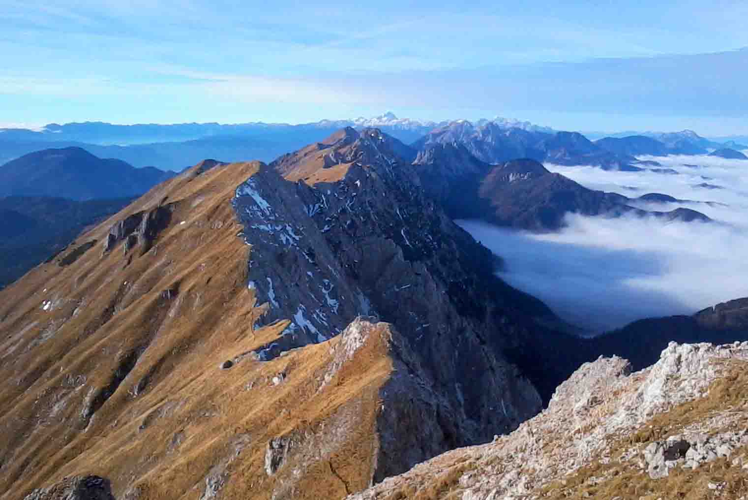 Od Škrbine dalje se greben Košute spet začne postopoma zviševati. Sicer pa se pot brez izjeme ves čas bodisi spušča, bodisi vzpenja prek številnih manjših in večjih vrhov. Na Užniku se mi je odprl lep razgled proti ferati na zasneženemu Cjajniku. Na srečo pa snega na južni strani grebena, kjer poteka večji del pot, ni. Za Užnikom greben spet postane strm in izpostavljen. Na srečo je pot dokaj dobro zavarovana. Najbolj strm in izpostavljen del pa nas čaka čisto na koncu. Seveda čez ta del grebena nisem mogel teči.