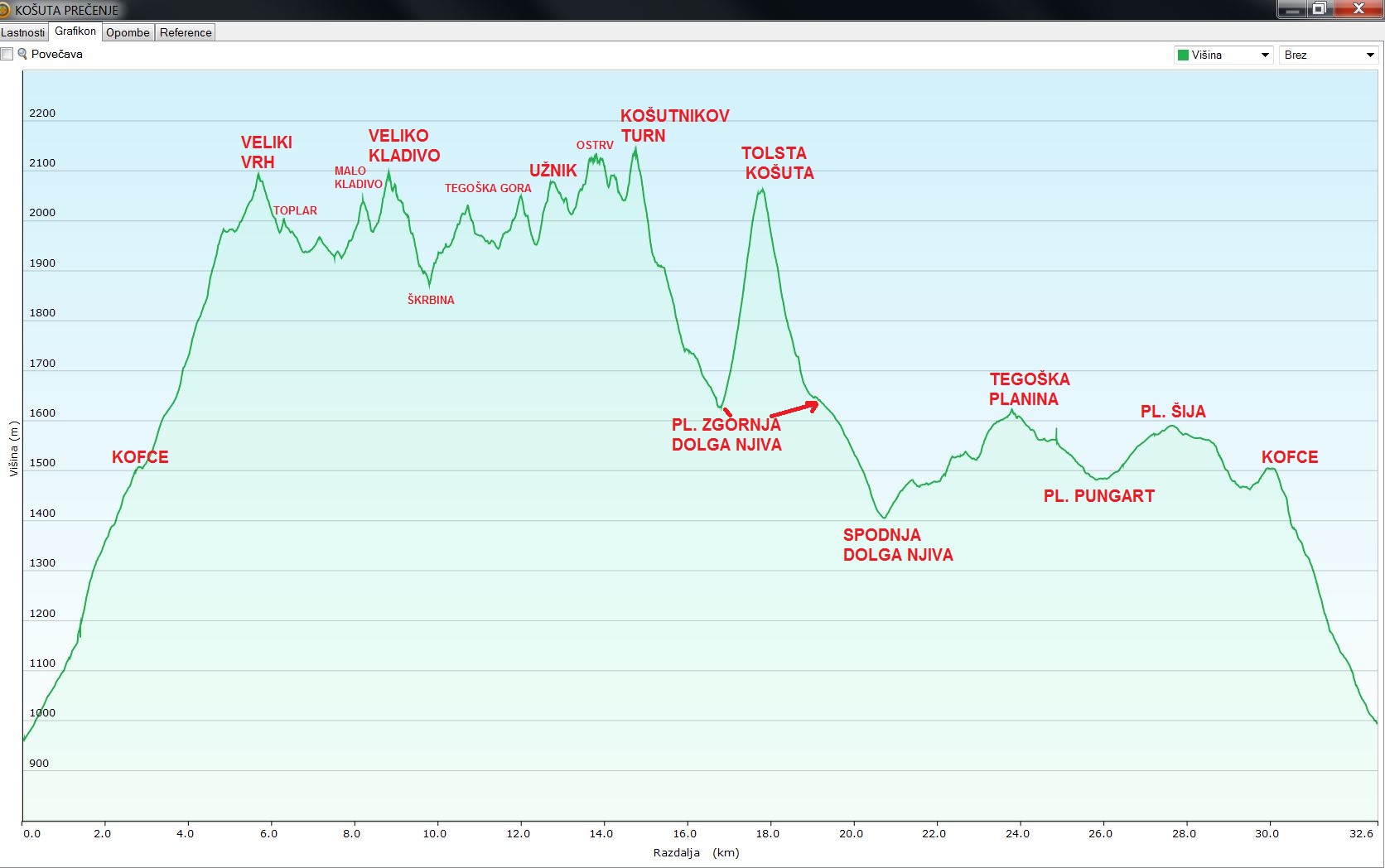 Na Spodnji Dolgi njivi sem se usmeril na prečno pot proti Kofcam. Tudi ta pot se je izkazala kot odlična za tek. Tako sem užival da sem si skorajda želel da se ne bi nikdar končala. Podobno kot pred tremi leti, sem tudi tokrat, lezel čez jezike snežnih plazov. S Tegoške planine sem se spustil na veliko planino Pungart, ki jo krasijo nenavadno obsežni grbinasti travniki. Za tem pa je sledilo le še kakšnih pet kilometrov lažjih klancev in spustov prek Šije in Kofc do cilja. GPS mi je tokrat nameril 32.6 km in 2925 m vzpona in spusta.