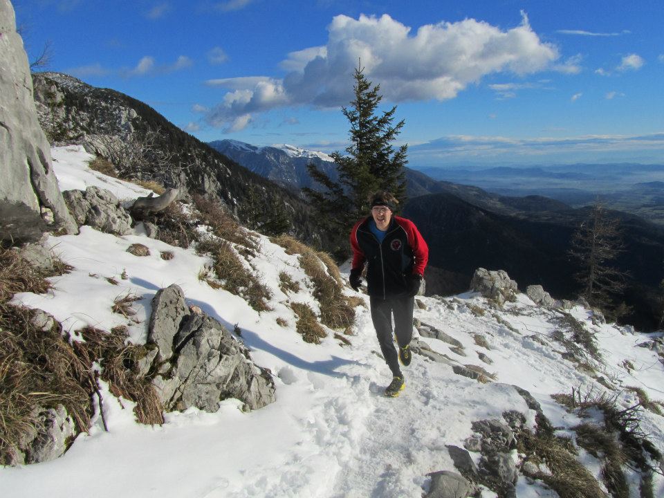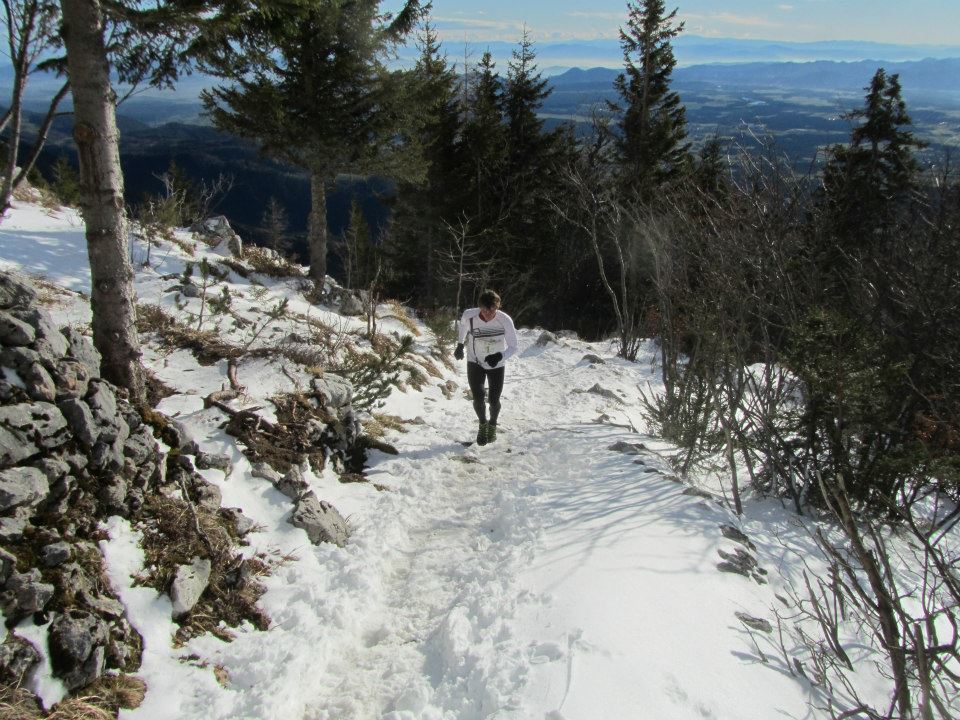 Pričakoval sem da bo slej ali prej omagal. Vendar mu nikakor nisem uspel pobegniti. Ves čas me je držal na enakomerni razdalji okrog ene serpentine. To mi je po svoje celo ustrezalo, saj pred seboj nisem videl nikogar. Skratka odtekel je fantastično in zdi se mi da je le še vprašanje časa je kdaj bo v tekaškem smislu “eksplodiral”. Šele pri drugi klopci smo prešli snežno mejo. A, sneg je bil mehak in ni povzročal težav. Nekoliko je drselo le na jasi tik pod Kališčem. Zimskega vzdušja, kot je to bilo lani, pa letos ni bilo.