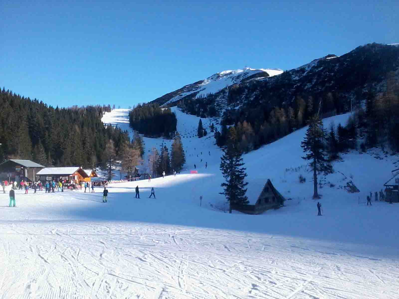 Na snežni plaži na Krvavcu je bilo bistven bolj toplo kot v dolini. Tudi gneče na smučišču ni bilo take kot sem pričakoval. V preteklosti sem veliko presmučal na Krvavcu in na tak dan še nisem videl tako zelo praznega smučišča. Kljub temu da ni veliko snega, so bile proge videti dobro pripravljen. Verjetno gre razlog za slab obisk iskati drugje – časi so težki in ne more več vsak plačati 29 € za smučarsko vozovnico.