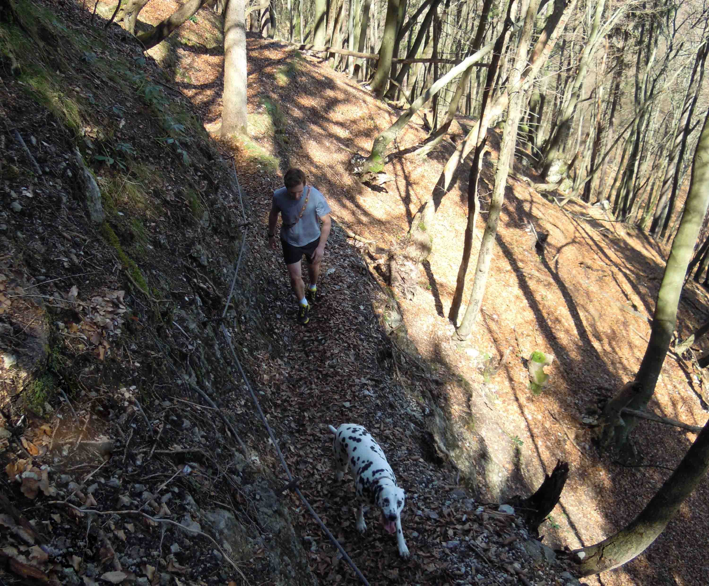 Z Mlina sva nadaljeval po poti pod Vilo Bled. Tu pa vse kot po starem, slikar starec, ki še vedno slika Blejski grad. Nisem ga še uspel spoznati, čeprav sem ga srečal v vsakem od svojih nešteto krogov okrog jezera. Pot se za tem kmalu približa asfalti cesti in tu je treba slediti kažipotu, ki nas usmeri levo navzgor proti Osojnici. To je najlepši in edini zahtevnejši del poti. V primeru snega je nevarno za zdrs, za kar dobro ve nek Avstralski turist, ki je tu svojo neprevidnost plačal z življenjem. V primeru da je suho pa je pot prijetna in nas prek strmih kovinskih stopnic pripelje na vrh Male Osojnice. Tudi nama z Juretom se je tu nekoliko zataknilo, saj sva Juretovega dalmatinca le s težavo spravila na vrh stopnic.