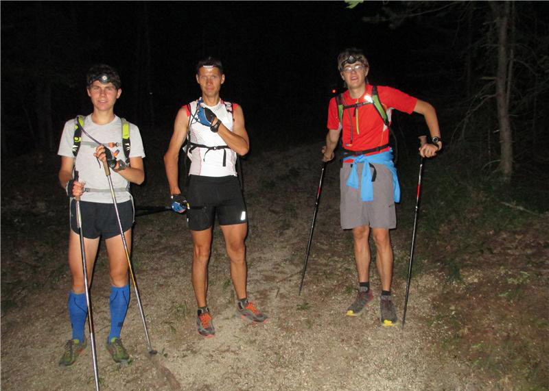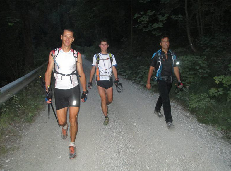 15 minut čez polnoč smo s turo začeli v Žerjavu. V počasnem teku smo nadaljevali navzdol proti Črni na Koroškem. Potem pa smo zavili v dolino Meže in nato Helenskega potoka. V vasi Podpeca smo po osmih kilometrih asfalta končno zavili na makadamsko cesto. Še nekaj kilometrov makadama in že smo se začeli strmo vzpenjati navzgor proti Peci. Noč je bila zelo topla in je le naznanjala kakšen pekel nas čaka podnevi. Prav nič si se nisem želel da bi se noč kaj kmalu končala. Poleg tega sem užival v pogledih pogledih na čudovito nočno nebo: Škorpijonovo želo, Strelec, Kasiopeja, Plejade in pa seveda Rimska cesta, ki jo pri nas redko kje tako dobro vidna. So pa naše naglavne lučke privabljale mrčes, ki je silil v naše človeške odprtine. Prav vsi smo se davili, ko smo nehote pogoltnili kakšno muho.