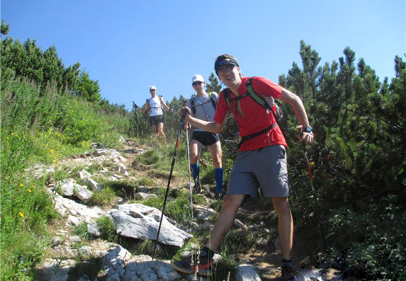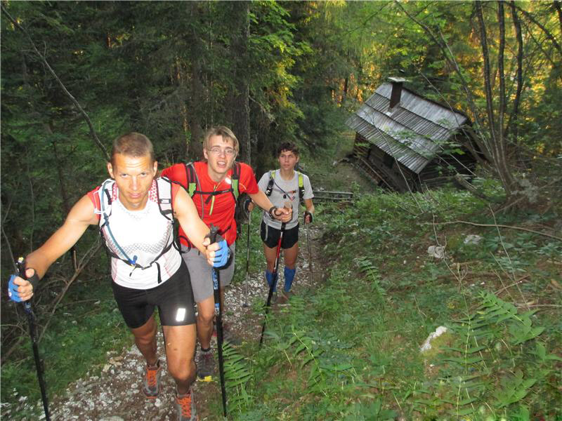 Po plezalni poti smo se vzpeli na Veliko Raduho (2062 m). Pot mi je bila zares všeč, saj je lepo speljana. Poleg tega je na njej tudi polno geoloških posebnosti – še posebno lepe so žagaste gube v apnencu. To je nekaj, kar bi vsakemu geologu po svetu postavilo oči na peclje. Žal danes za te reči ni bilo dovolj časa, saj je bilo treba riniti naprej. Na vrhu Raduhe smo imeli že 40 km poti v nogah, čakalo pa nas je še 50 km. Utrujenosti za zdaj še nisem čutil. Le pogled na ciljni vzpon je jemal motivacijo, saj je bila Uršlja gora od tod videti zares neverjetno daleč. Je res možno da bomo nekoč tam?